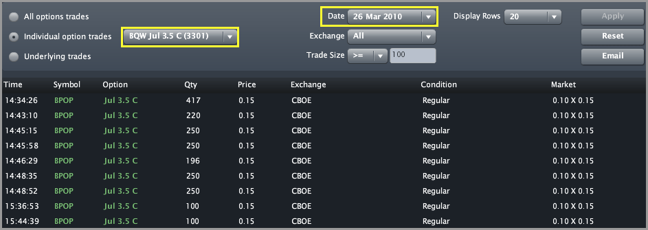 The MTG Options Tab (click to enlarge) demonstrates that the Apr call volume is smaller than the OI. A little order flow analysis shows the Apr 7.5 calls are purchases today on top of long OI - the trades today are also opening. The Apr 10 calls are sales today on long OI - these are closing sales. Note also the large OI in some of the other calls.